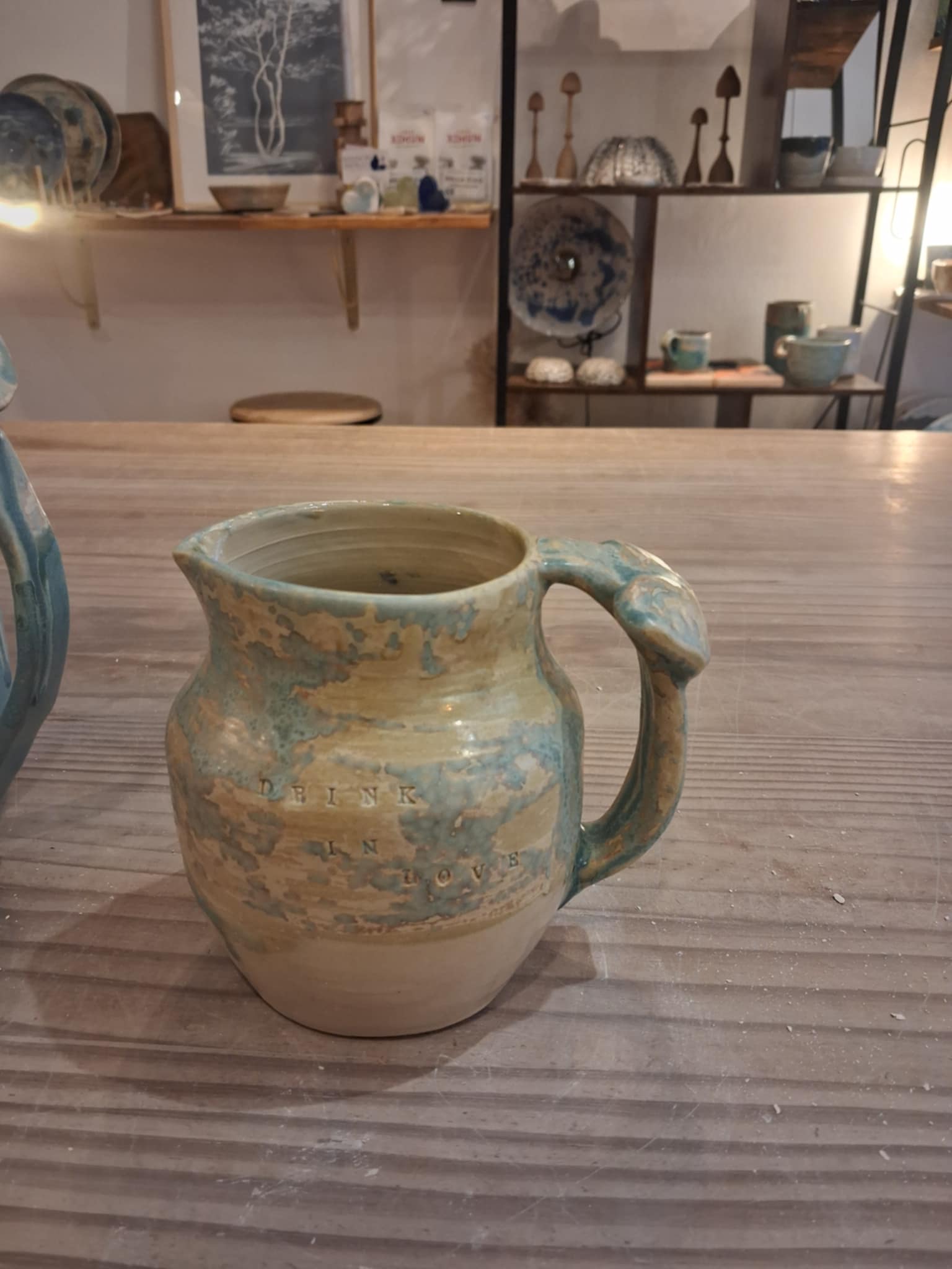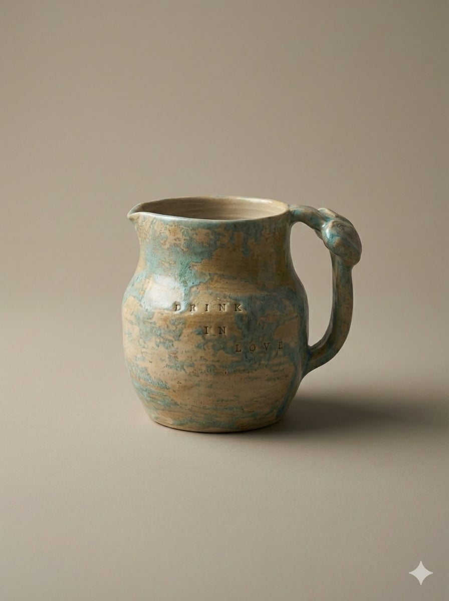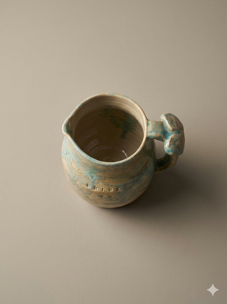 Pichet tourné en grès blanc lisse, fait maison en France, émaillage alimentaire.